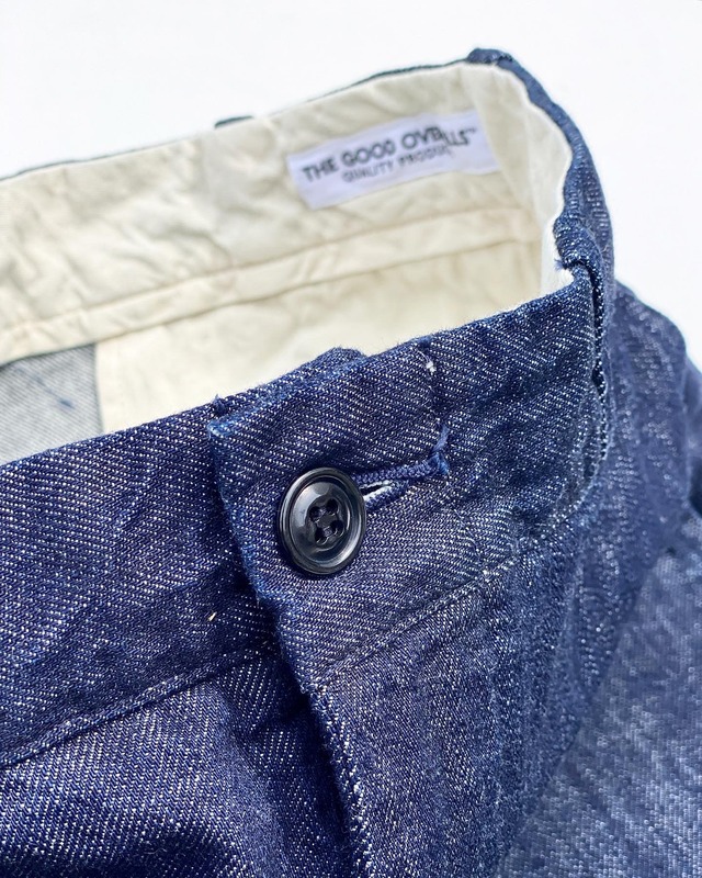 THE GOOD TROUSERS DENIM ◼︎Size⇨W30 L30/W30 L32/W32 L30/W32 L32/W34 L32/W36 L32 ◼︎実寸(ワンウォッシュ、低温乾燥済み) W30 L30(ウエスト74cm 股上29cm 股下78cm) W30 L32(ウエスト74cm 股上29cm 股下82cm) W32 L30(ウエスト78cm 股上30cm 股下78cm) W32 L32(ウエスト78cm 股上30cm 股下82cm) W34 L32(ウエスト82cm 股上31cm 股下82cm) W36 L32(ウエスト86cm 股上32cm 股下82cm) W38 L32(ウエスト90cm 股上33cm 股下83cm) ※リジットの状態からは縮みがでています。 ◼︎Material⇨Demim ◼︎Made in Japan ◼︎10oz ◼︎Unsanforized ◼︎Cotton 100% ,Cotton thread 全てワンウォッシュ、低温乾燥済みになります。 ※ご購入の際は備考欄にご希望サイズをご入力よろしくお願い致します。 THE GOOD TROUSERSは60年代のチノパンのディテールをベースに、普段から履き慣れているディッキーズ874ワークパンツのシルエットを落とし込み、細部まで小さなこだわり追加した新作アイテムになります。 ビンテージチノパンの歴史は古く、米軍で実際に使用されていた40-50年代辺りから始まります。 今回採用したのは、雰囲気・機能性共に好みの60年代特有のディテール。 シングルのサイドシーム、サイドシームに沿ったポケット、ジッパーフライ、バックポケットの片玉縁等。 60年代チノパンだと本来フロントホック仕様ですがクラシックなイメージを重視する為にボタン仕様に変更。 ビンテージのシルエットでは股上が深く、真っ直ぐ太めストレートで野暮ったいシルエットのモノが多く、今回はそれを解消すべく、普段から履き慣れているディッキーズ874のサイズ感を落とし込みサイズ感を微調整しました。 裾にかけて少しテーパードしたシルエットが非常に収まりが良く、太すぎず、細すぎずの絶妙なシルエット。ルーズな印象を与えず、スニーカー、ブーツどちらにもにマッチします。 ウエストを横から見ると、背中側に向かって若干高くなるハイバック仕様になっていることで、抜群のフィット感、履き心地を実現することもできました。 デニム生地には岡山県産の10ozデニム(Cotton 100%)SANFORIZEDを使用。 原綿は米綿(American cotton) デニムはTHE GOOD COVERALLと同素材になりますのでセットアップとしても着用頂けます。 ビンテージのディテール継承しつつ、履き慣れたサイズ感のTHE GOOD TROUSERS。 一度履くとヘビロテ間違いなしの一本になること間違いなし。 THE GOOD TROUSERSを是非お試し下さい。