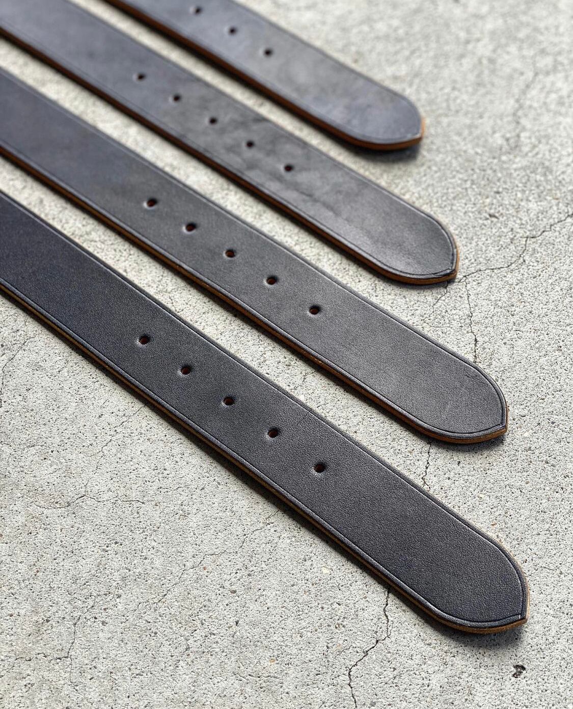 THE GOOD LETHER BELTは3.5㎜のフリージ(栃木レザー(原産:北米)を使用し、キャメルカラーをブラックに丘染めしました。